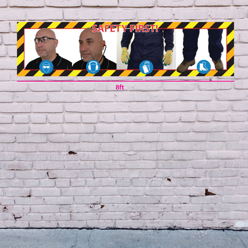 Ideal for anywhere that your safety message needs to be seen from a long distance. This large format (8ft x 2ft) safety banner sign is ideal for use on construction sites, in warehouses and factories and can be quickly attached to building structures.